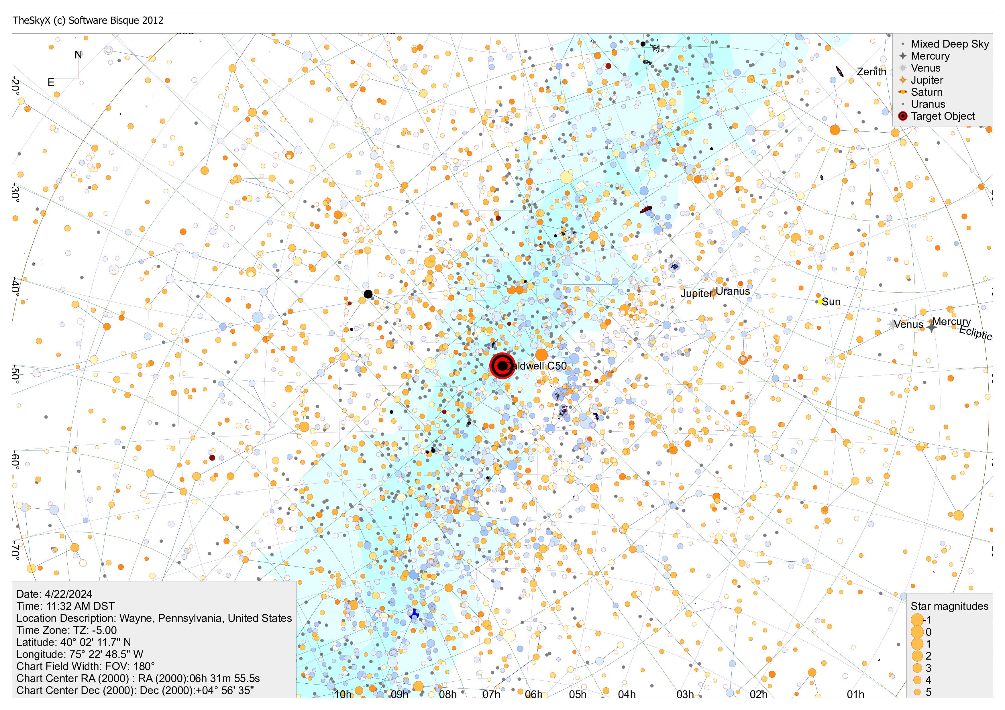 EYEPIECE FOCAL LENGTH = 55 mm RA = 8h 21m 20.8s DEC = +19° 35' 15"