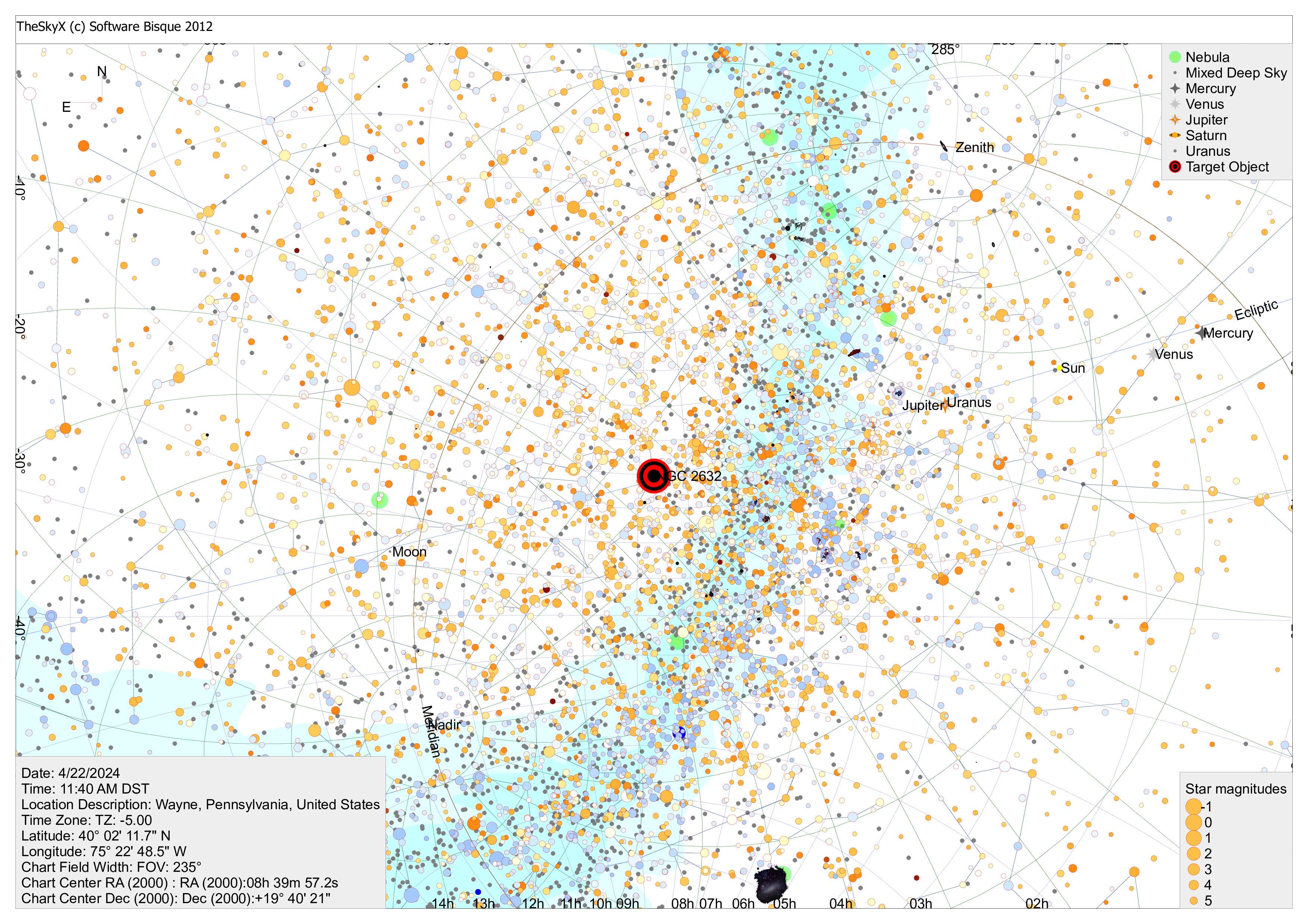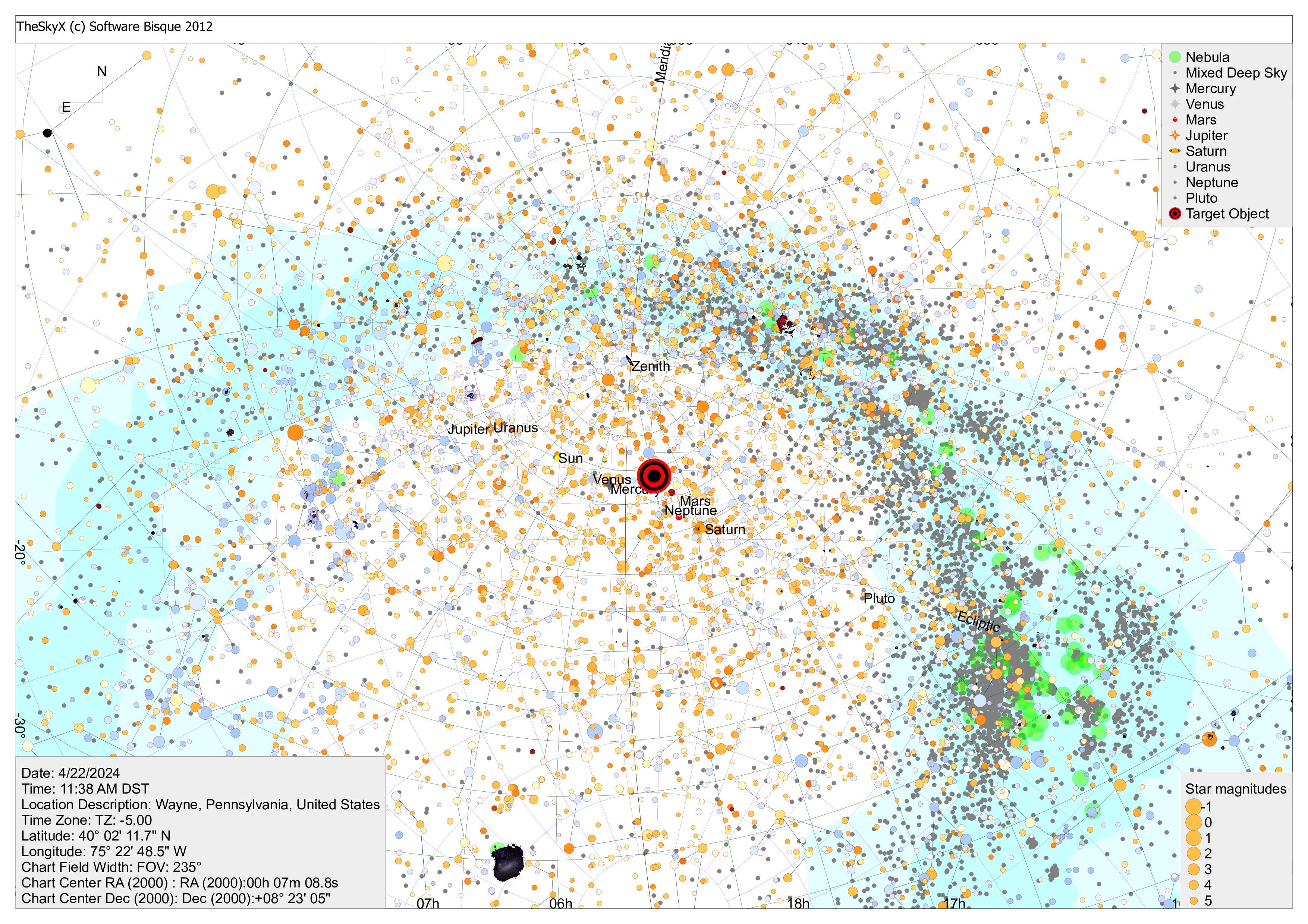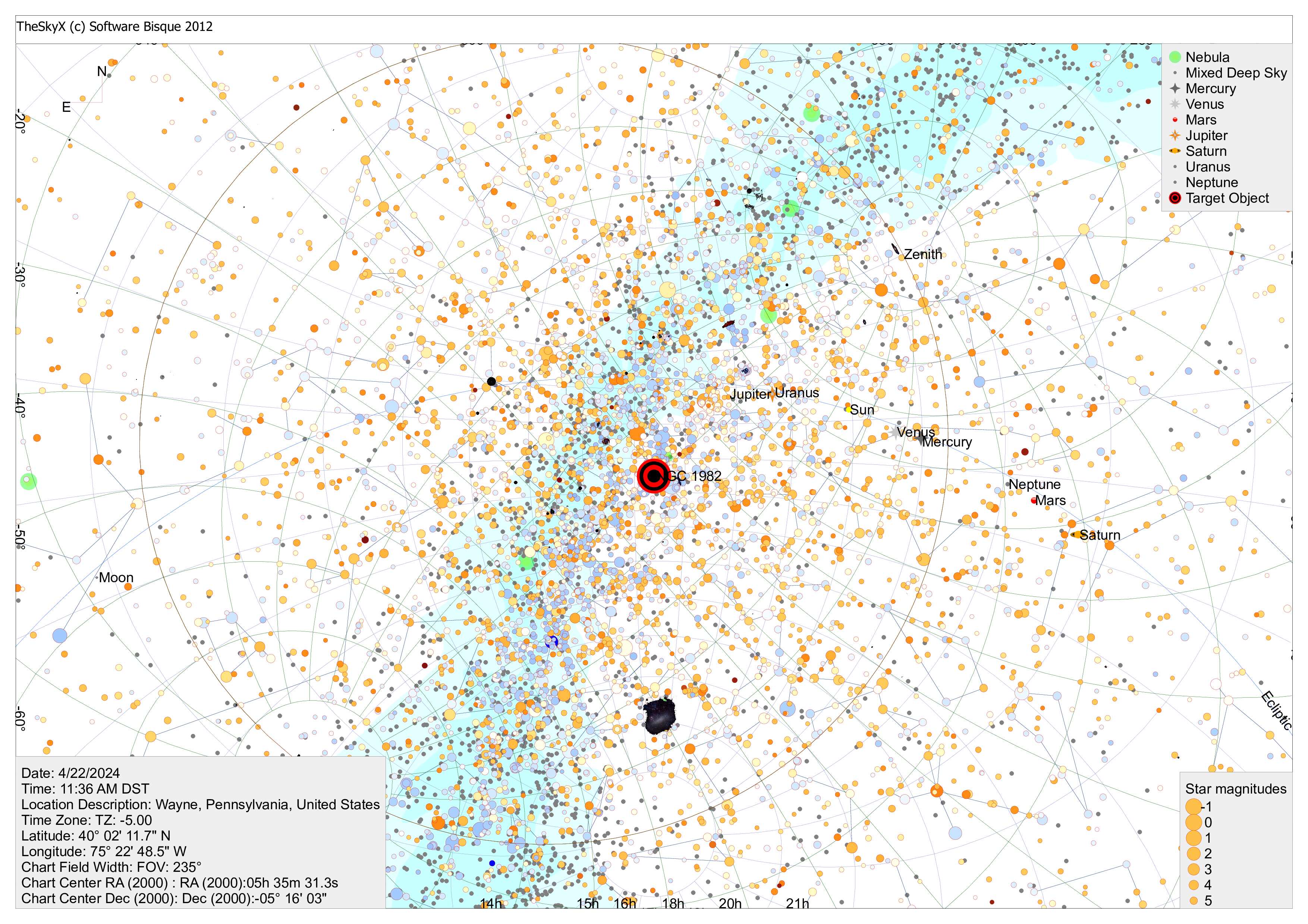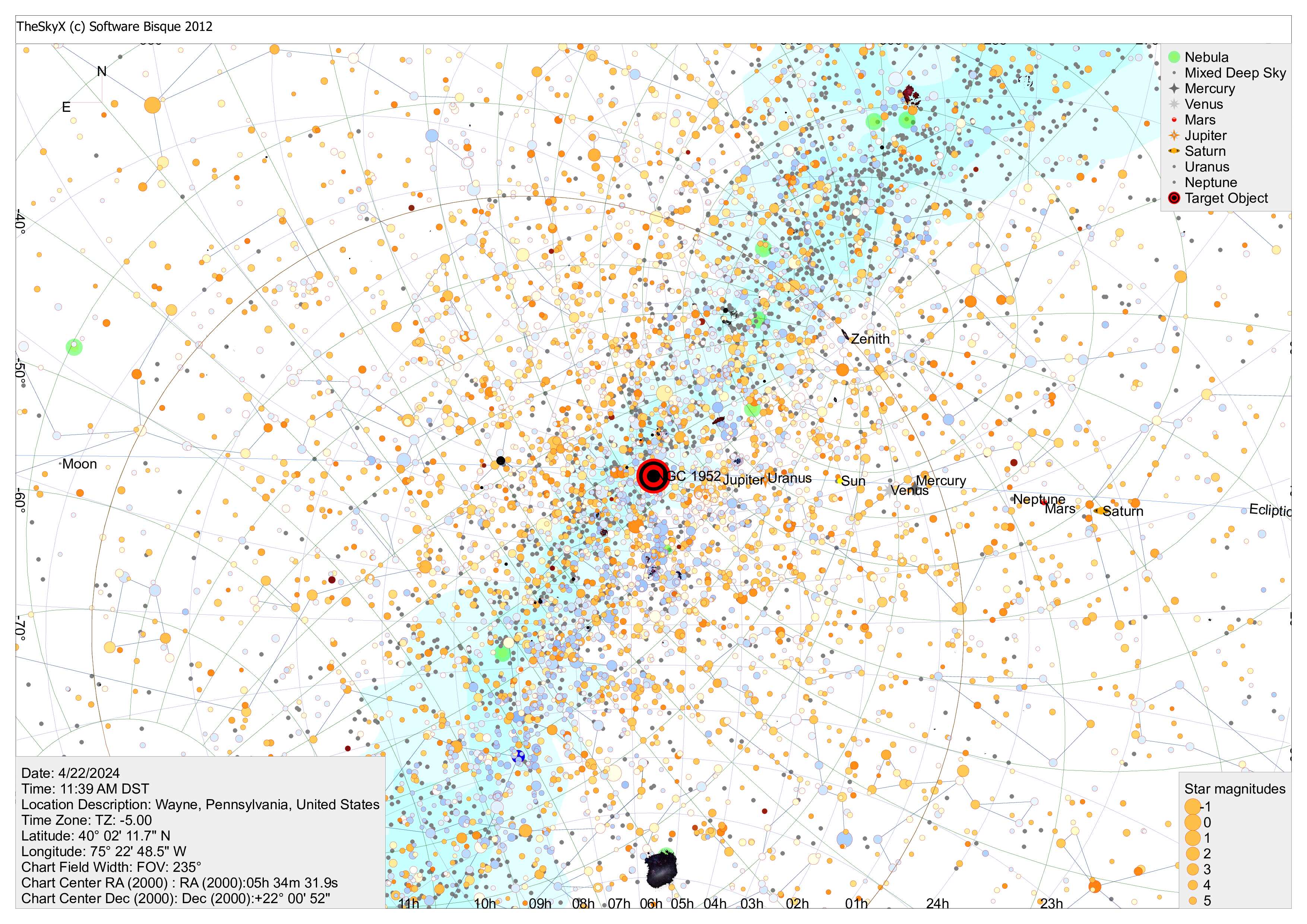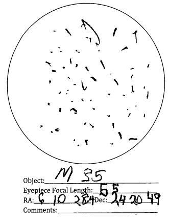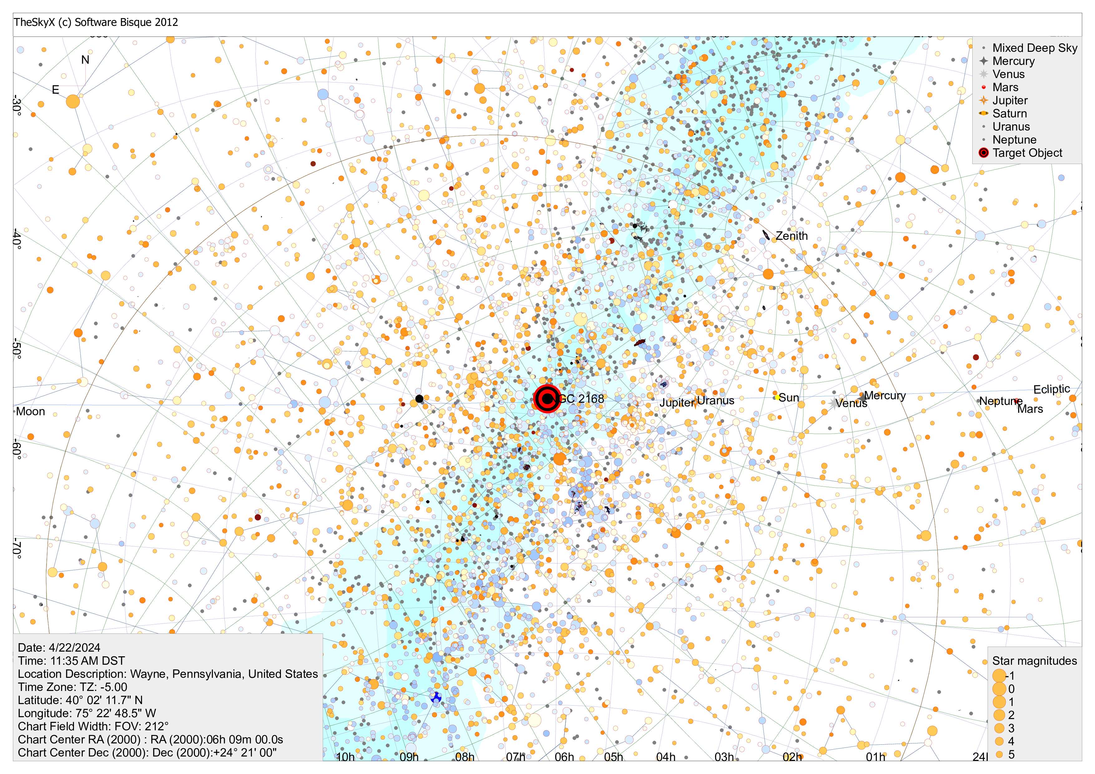EYEPIECE FOCAL LENGTH = 55 mm RA = 6h 10m 28.4s DEC = +20° 24' 49"