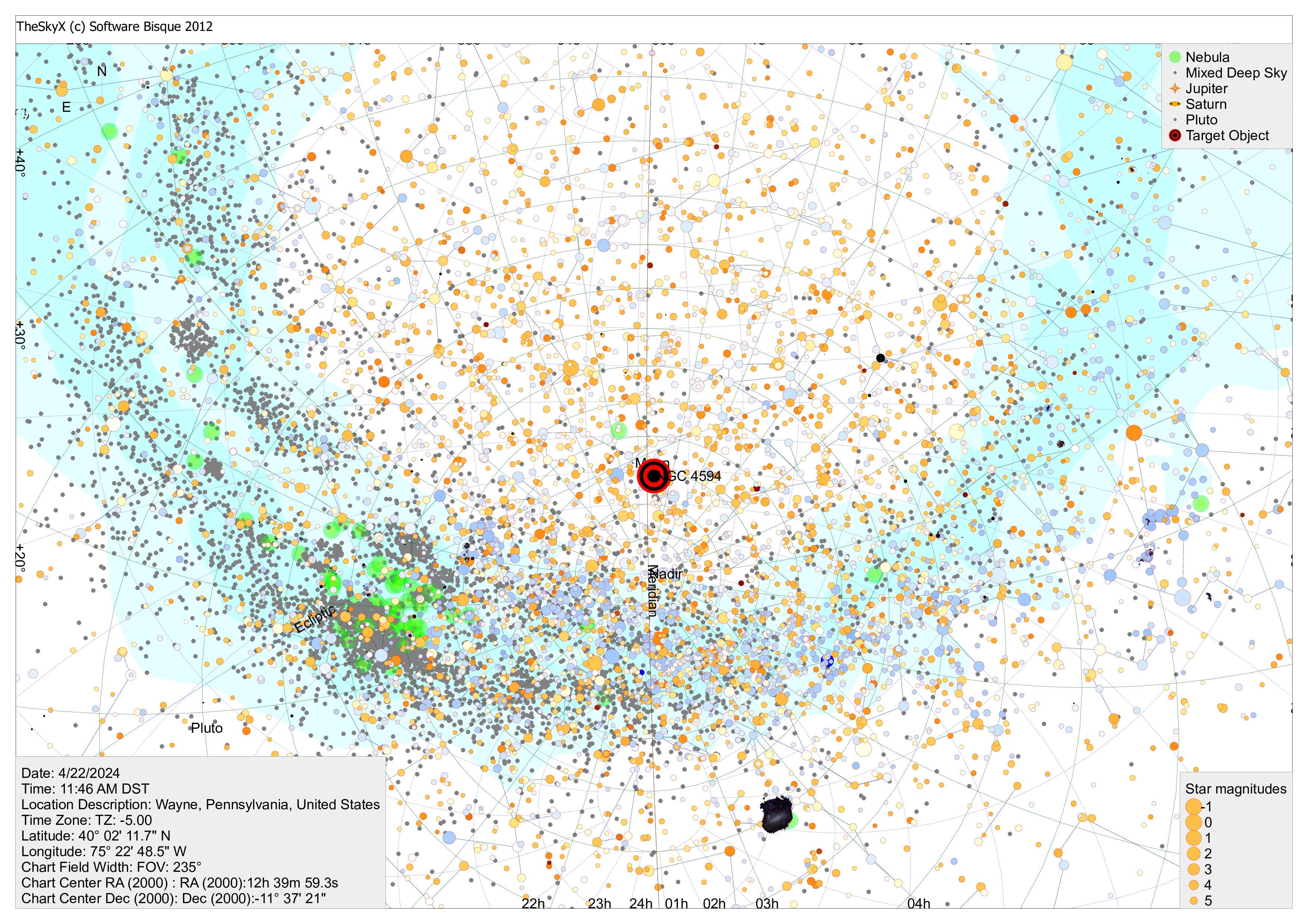 EYEPIECE FOCAL LENGTH = 55 mm RA = 12h 41m 6s DEC = -11° 45' 28"