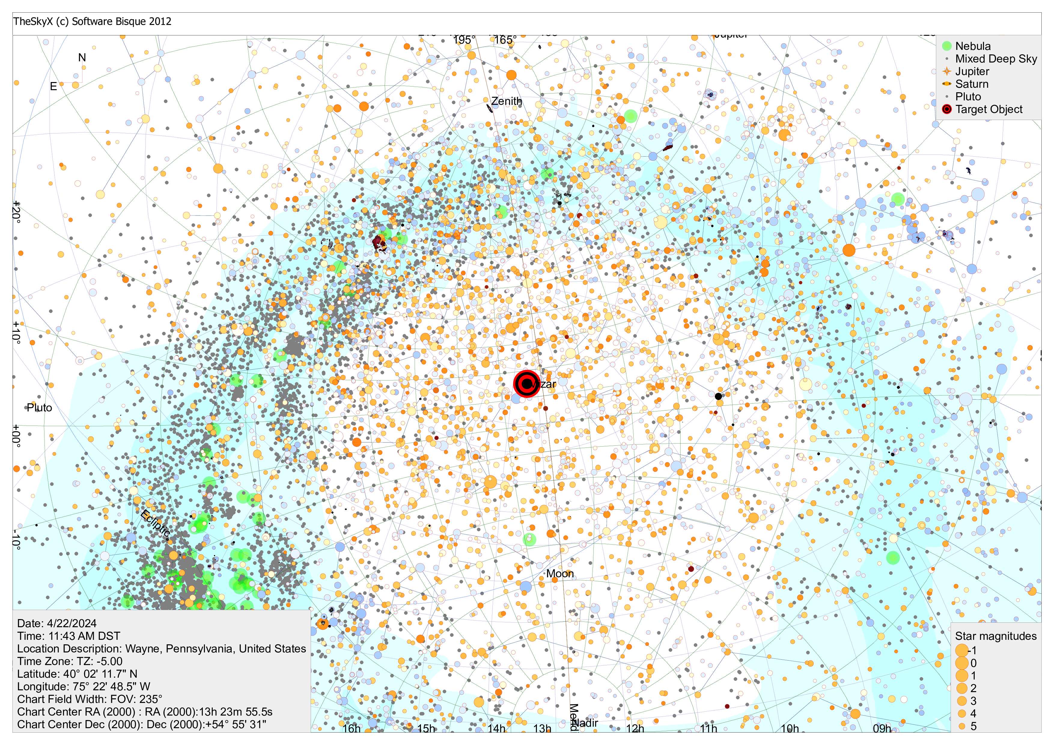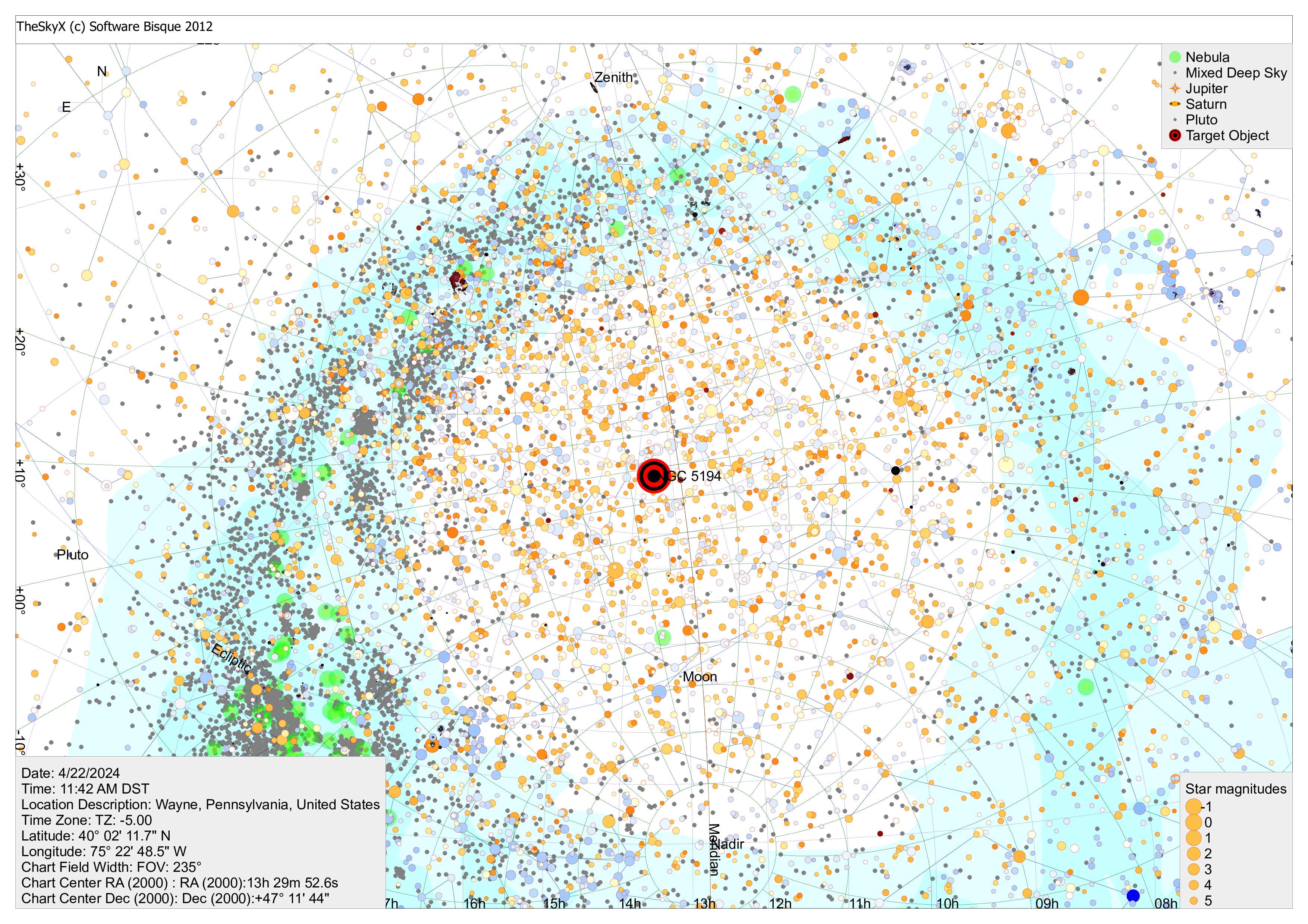 EYEPIECE FOCAL LENGTH = 55 mm RA = 13h 30m 54s DEC = +47° 4' 10"