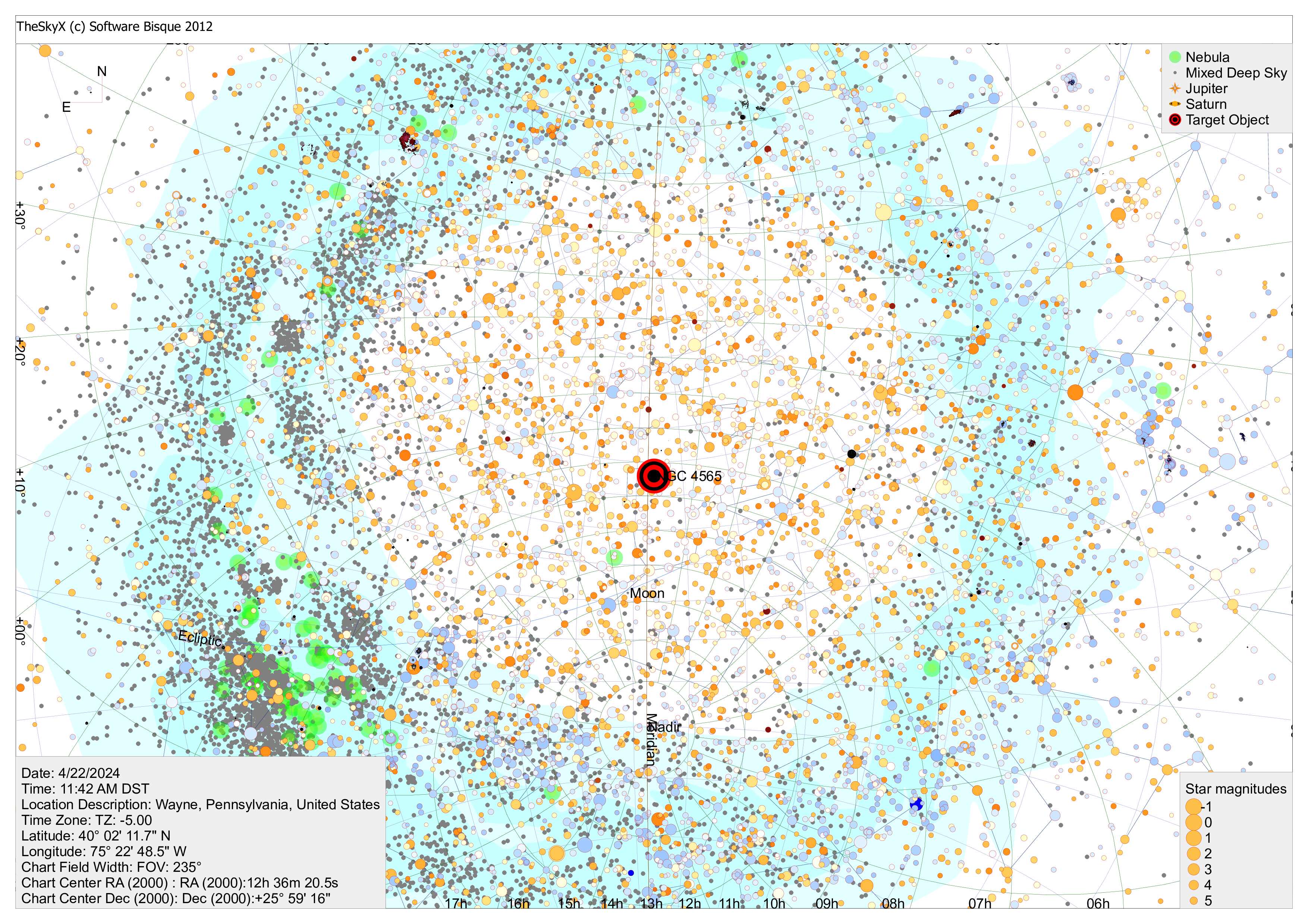 EYEPIECE FOCAL LENGTH = 55 mm RA = 12h 37m 34s DEC = +25° 51' 12"