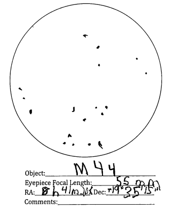 EYEPIECE FOCAL LENGTH = 55 mm RA = 8h 52m 43.7s DEC = +11° 43' 33"
