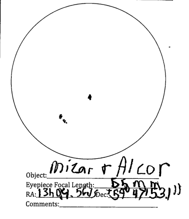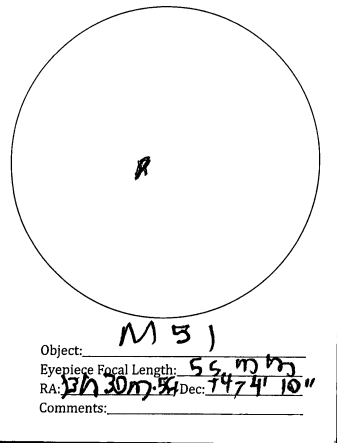 EYEPIECE FOCAL LENGTH = 55 mm RA = 13h 94m 56.7s DEC = +54° 47' 53.1"