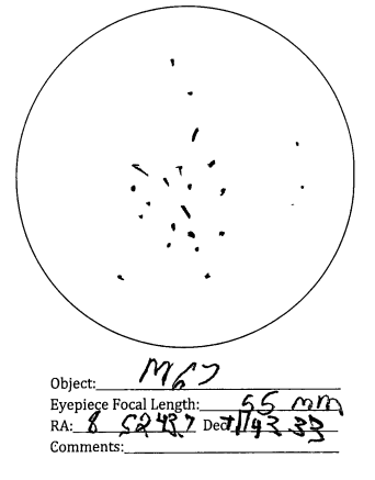 discovered M67 in 1779. This cluster is in an unusual location because it is nearly 1,500 light-years