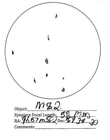 EYEPIECE FOCAL LENGTH = 55 mm RA = 9h 57m 34.3s DEC = +68° 57' 23"