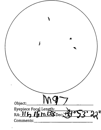 M97, the Owl Nebula, is roughly 2030 light-years from Earth with a brightness of 9.9 magnitude. This was